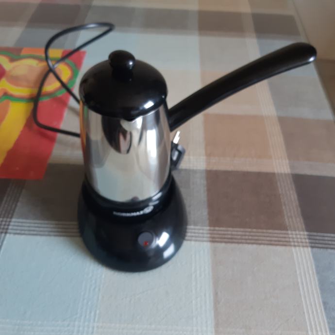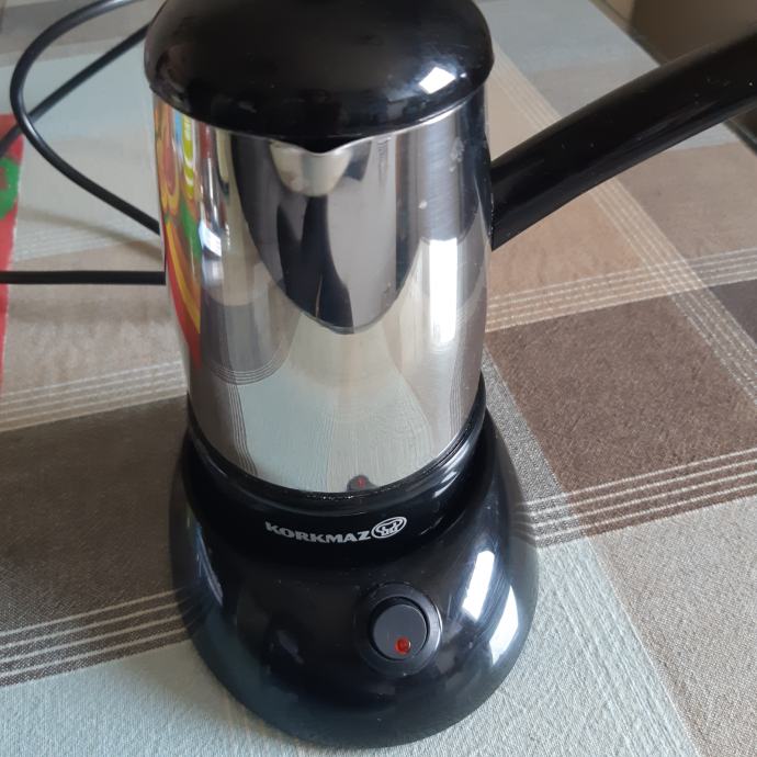 Električna džezva za kavu KORKMAZ A356, 400 W, za 4 šalice. Nehrđajući čelik 18/10, ergonomska ručka cool touch otporna na visoke temperature. Sigurnosni sustav koji sprječava rad bez vode. Korištena kratko i minimalno. U super stanju, kao nova.