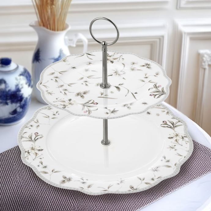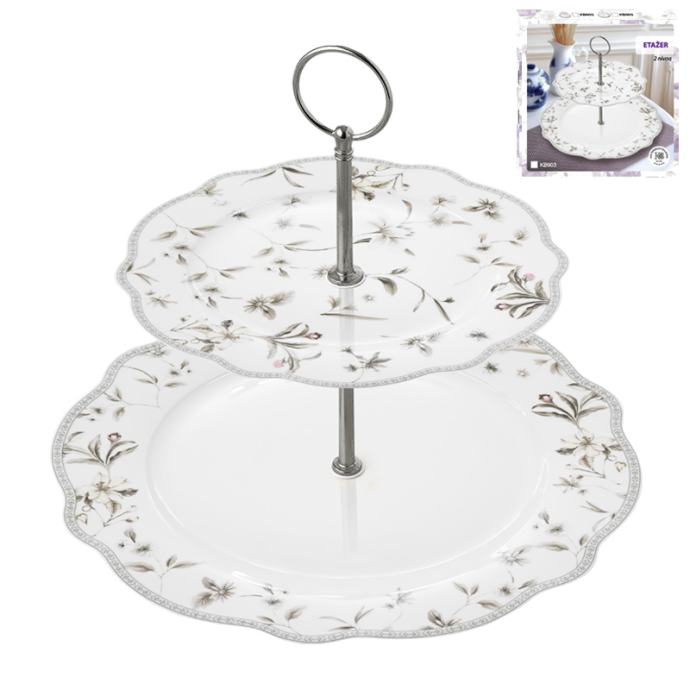 Elegantni etažer na dva nivoa izrađen od visokokvalitetnog New Bone porculana.