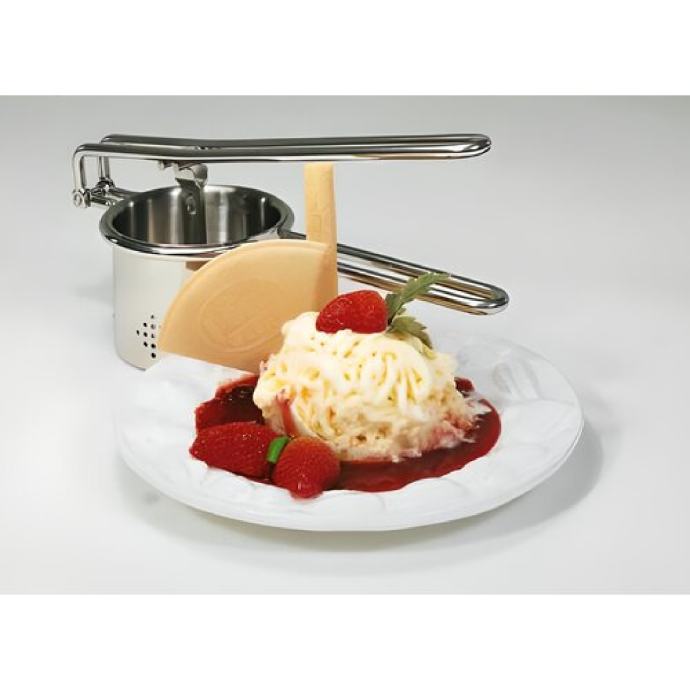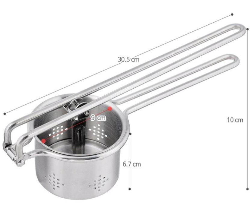 Nova, nekorištena i zapakirana preša od nehrđajućeg čelika za pire krumpir, pogodna za izradu kašica za djecu, voćnih sokova, špecli.