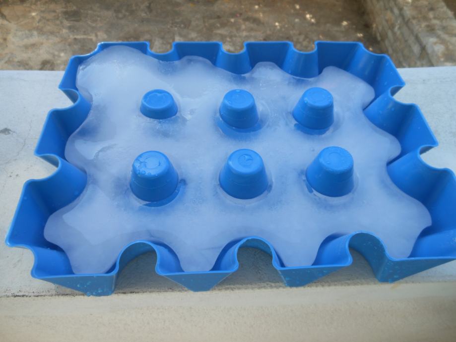 Jednostavno stavite zdjelu (baš kao ladicu za led) u zamrzivač / u zamrzivač i samo nekoliko sati kasnije mega blok leda za sanduk s pićem je spreman - i hladi sanduk s pićem na prekrasno svježu temperaturu bez struje, ili održava ga hladnim - ovisno o vanjskoj temperaturi 3-5 sati.