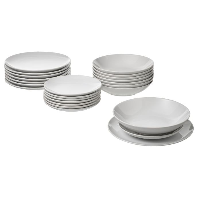 3 razlicita oblika tanjura , tocnije 9 dijelova je u setu. Obicni tanjuri 2kom (26 cm), desertni tanjuri 4kom (20 cm) i duboki tanjuri 3kom (23 cm).
