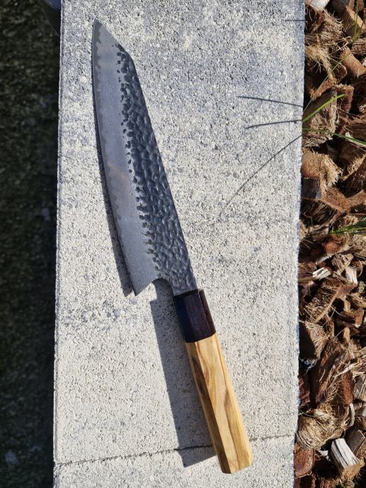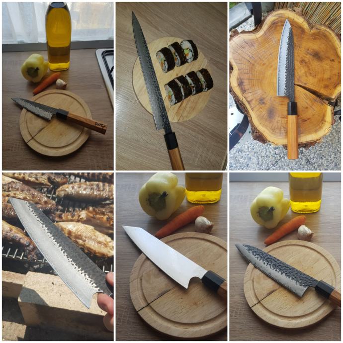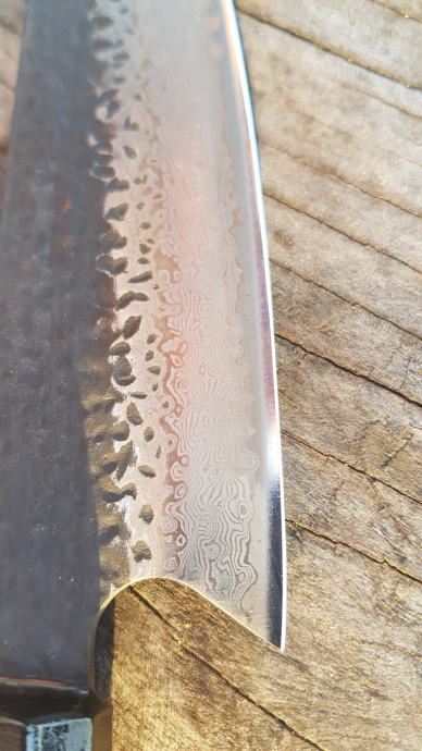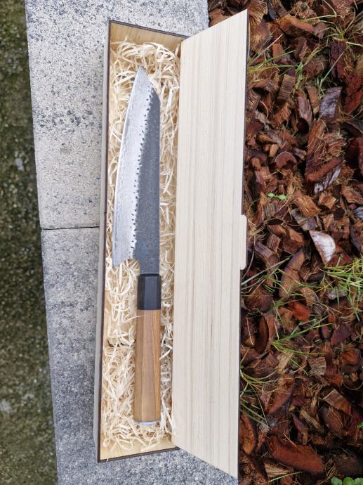 Prodajem japanski nož kiritsuke, ručno kovan 67 slojni čelik damask iz Japana,drška maslina,ebanovina , novi, nekorišten.