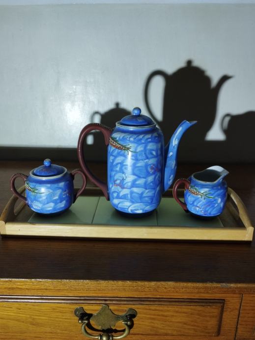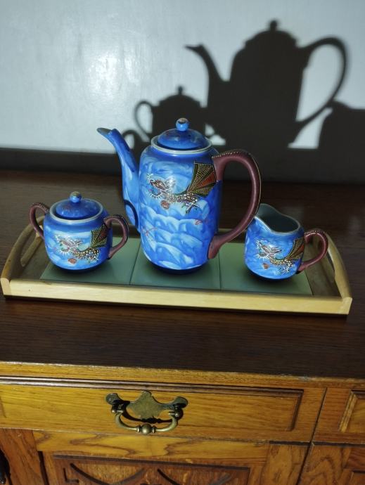 Japanski porculan moriage dragom geisha lithophane. Ručno oslikan čajnik, vrč za mlijeko i posuda za šečer. Tel 091-507-2944