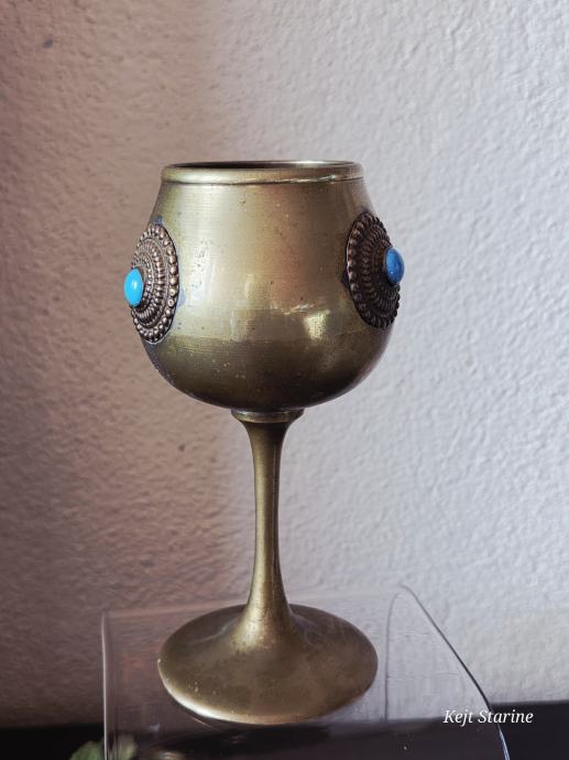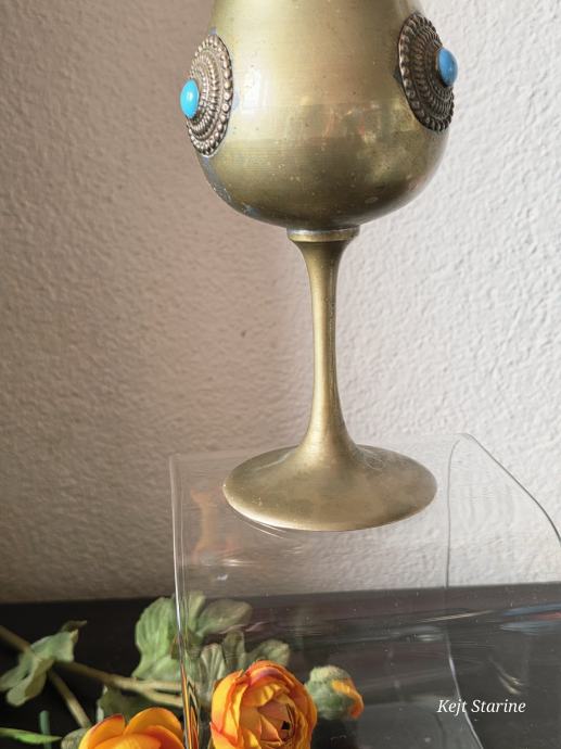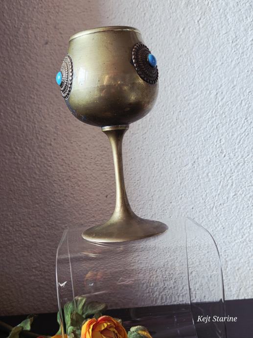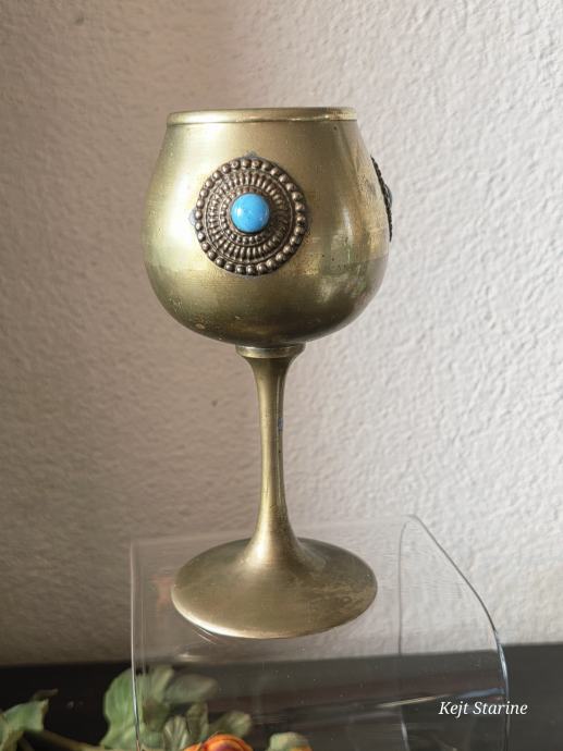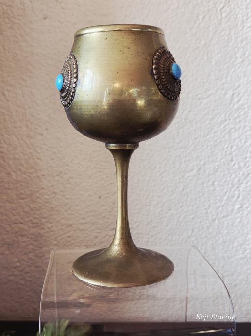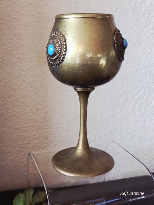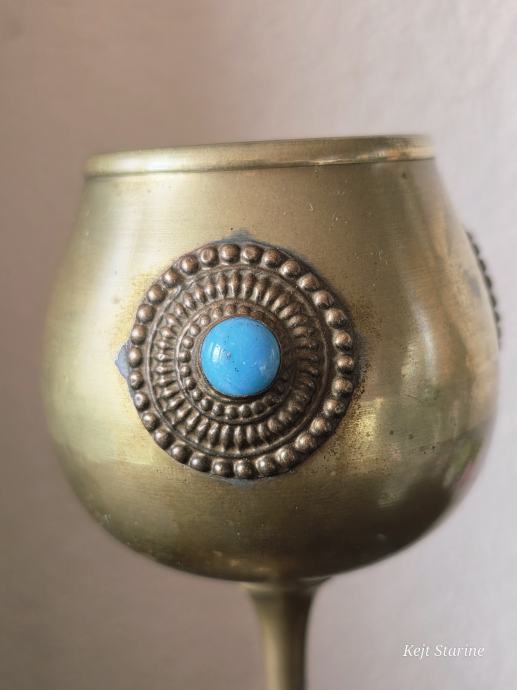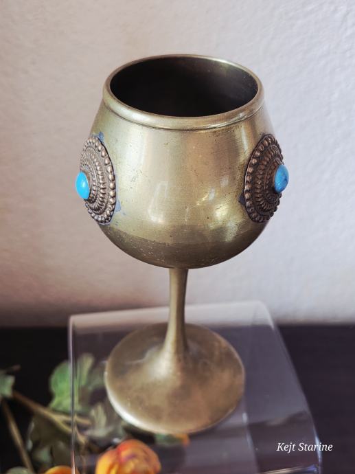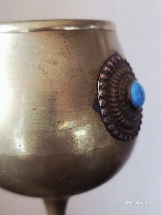 Starinski mjedeni kalež ili pehar, često opisan kao berba (vintage) i ukrašen tirkiznim ili sličnim poludragim kamenjem.