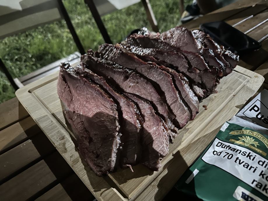 u ovom kamadu se moze pripremiti komad mesa do 2 kg - primjer dimljene svinjetine buta od 2 kg medu slikama