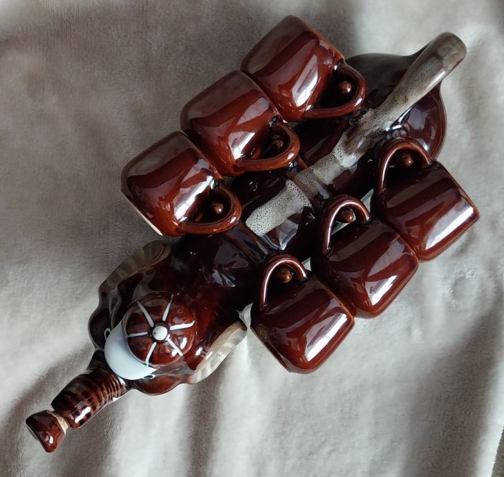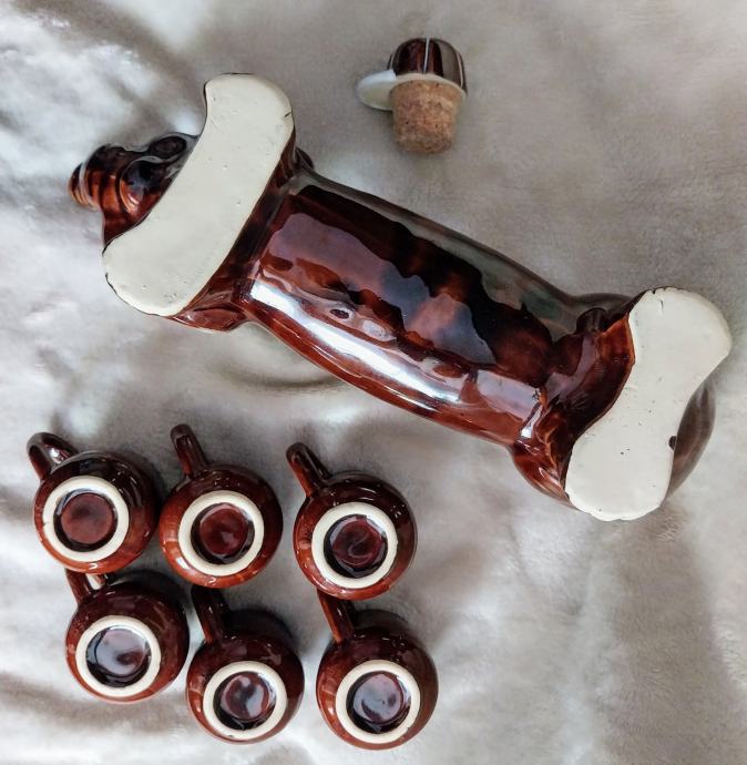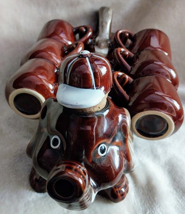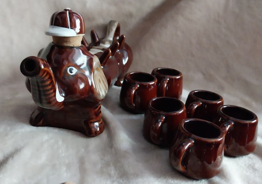 Keramički retro dekanter u obliku slona za žesticu i vino sa 6 čašica
