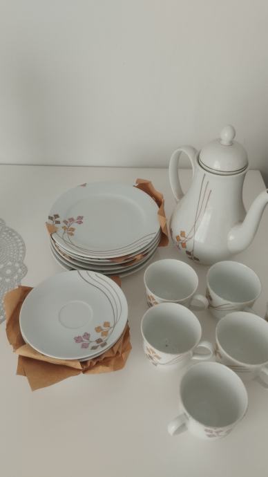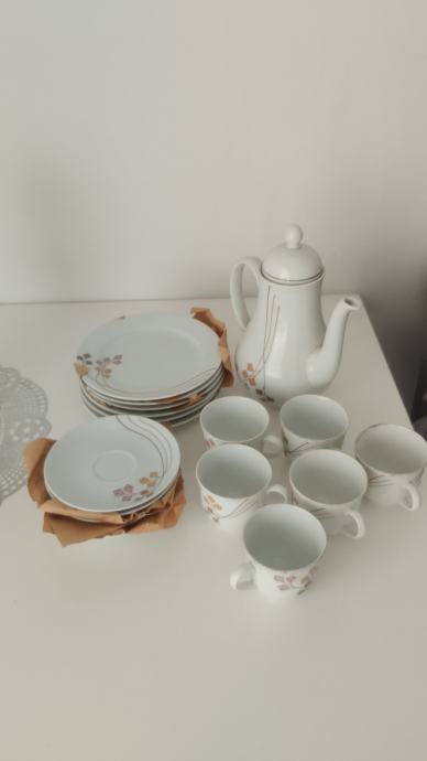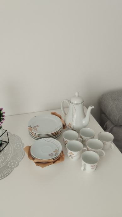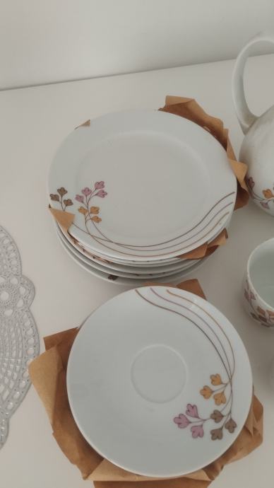 6 šalica za kavu, 6 tanjurića ,6 srednjih tanjurića,visoki čajnik ili vrč