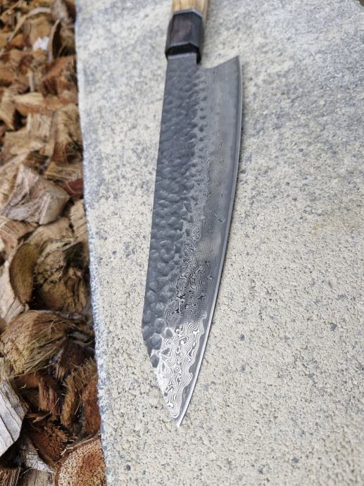 Čelik je damask 67 sloja, središnji čelik VG10 ,čvrstoće 58-60HRC, na dršku mogu Vašoj želji gravirati ime ili vrstu noža na dršku.