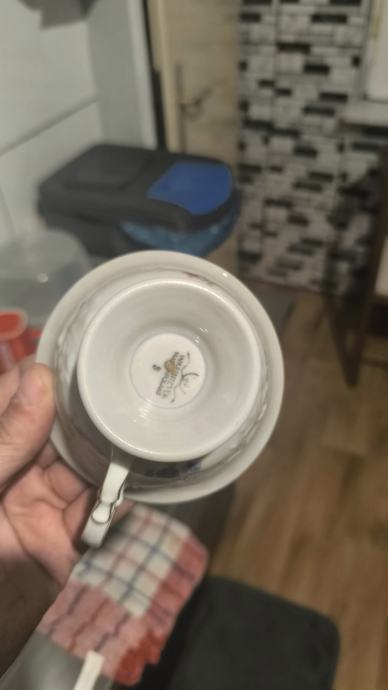 GRATIS POKLONI: Vaza Capodimonte stila (Labudovi su dobri, ali gornji rub ima oštećenje) + 2 male šalice (ukupno 30 komada porculana!).