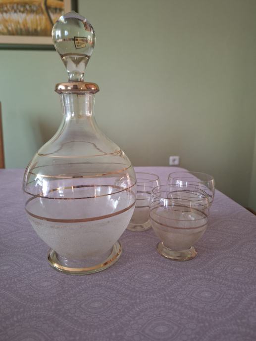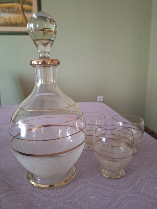 Prodajem starinski stakleni komplet za piće koji se sastoji od dekantera (karafe) i 3 čaše. Bez većih oštećenja.