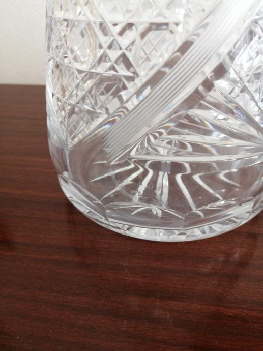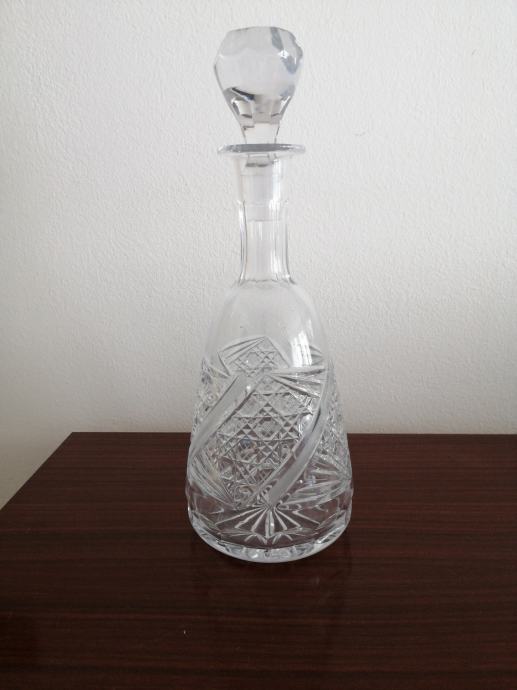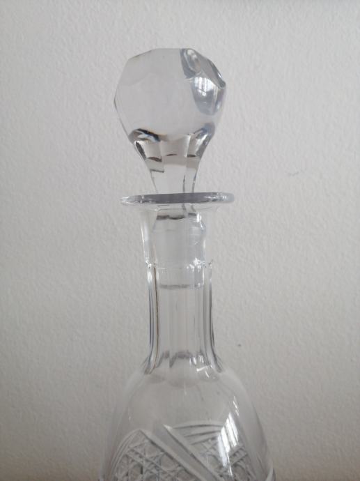 Malo oštećenje pri dnu, korištena nekoliko puta, kristal samobor, visina s čepom 33.5cm, preferiram osobno preuzimanje Zg Dubrava, cijena je fiksna