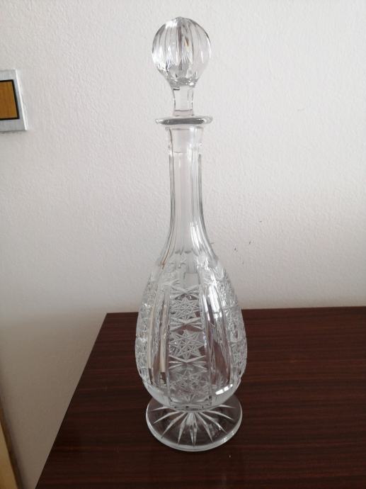 Kristalna flaša bez oštećenja, nekorištena, visine 37.5cm s čepom, stara bar 40 godina cijena je fiksna
