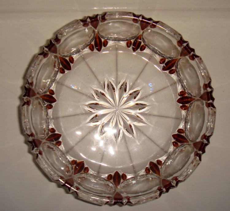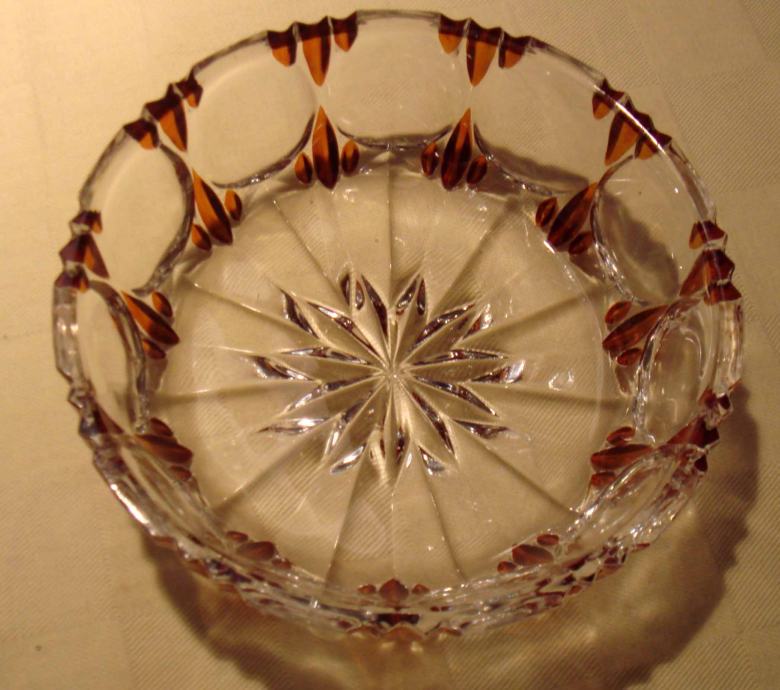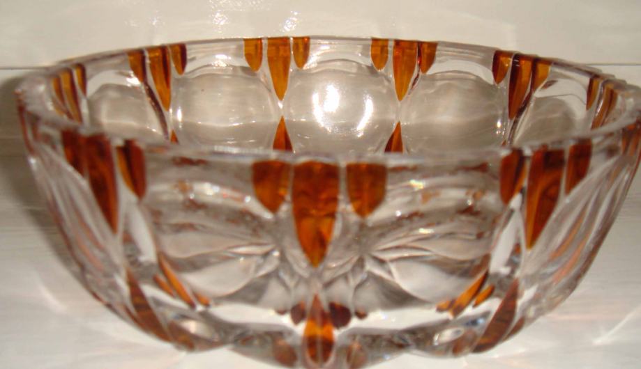 Stara kristalna zdjelica sa narancastim ukrasnim detaljima, vrlo malo rabljena, kao nova