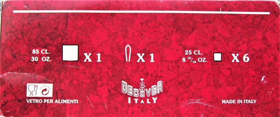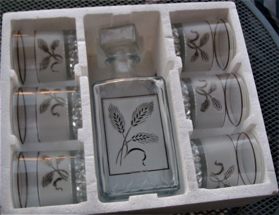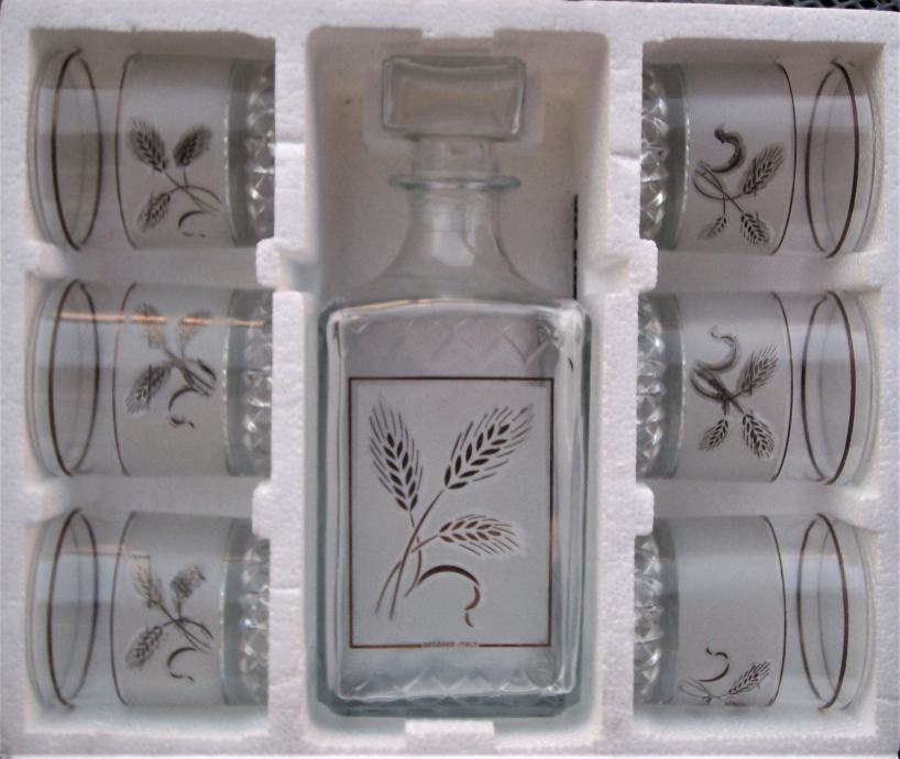 komplet je od kristala, sadrži jednu bocu i 6 čaša