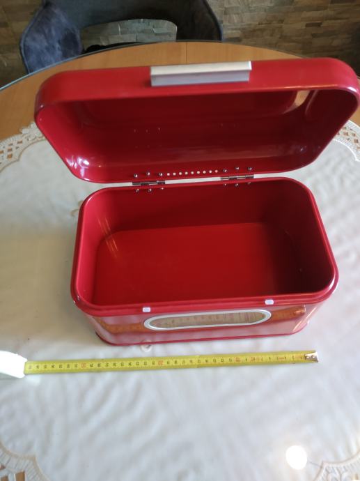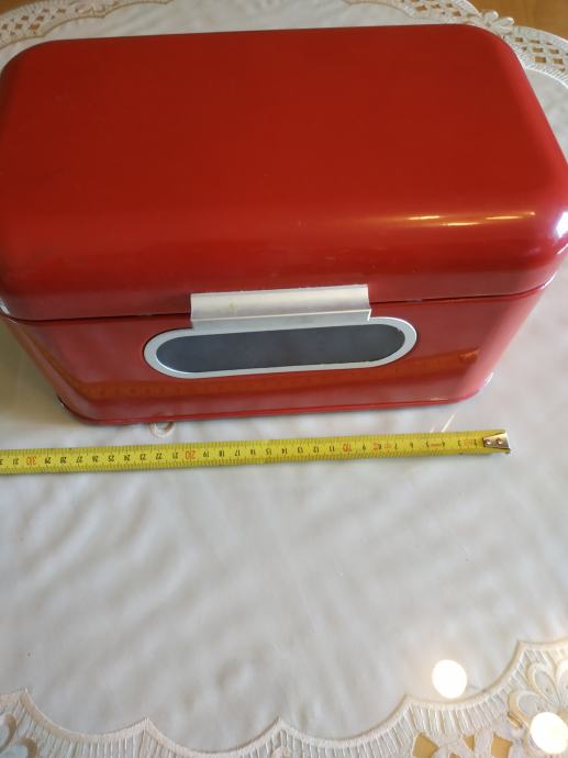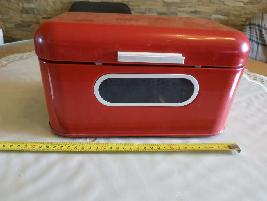 Kutija za kruh,metalna,crvena,stakleni prozorić,kao novo