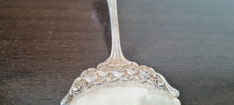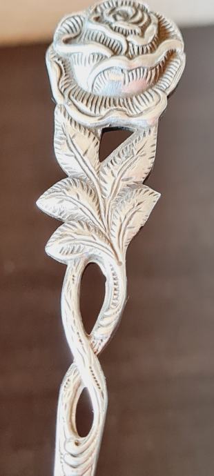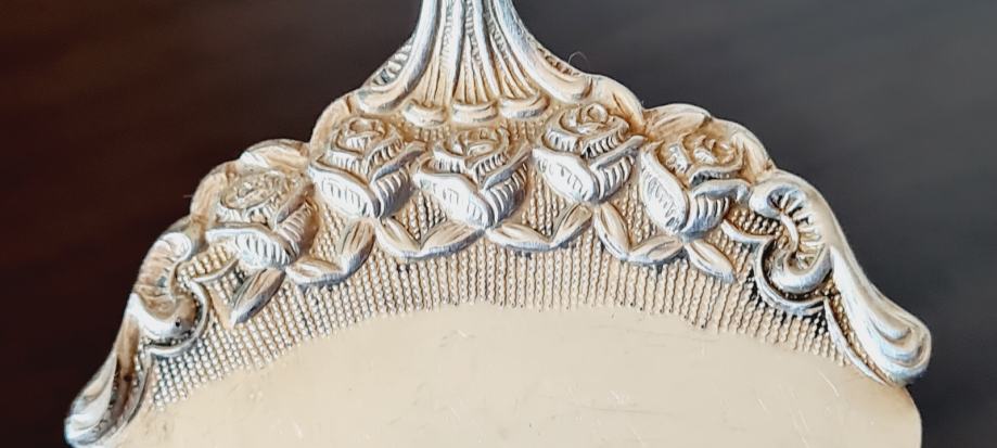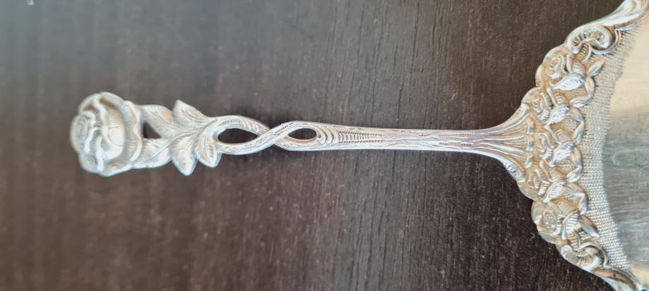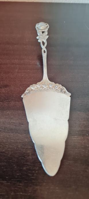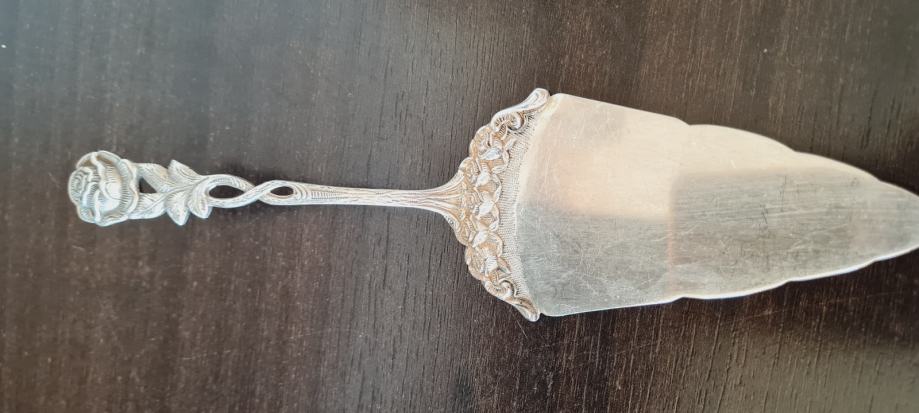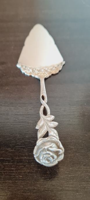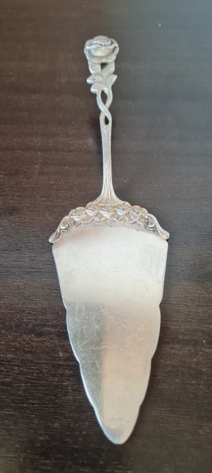 Lopatica za kolače, s udjelom srebra 100. Iz 40- ih godina prošlog stoljeća. Ručka je u obliku ruže.