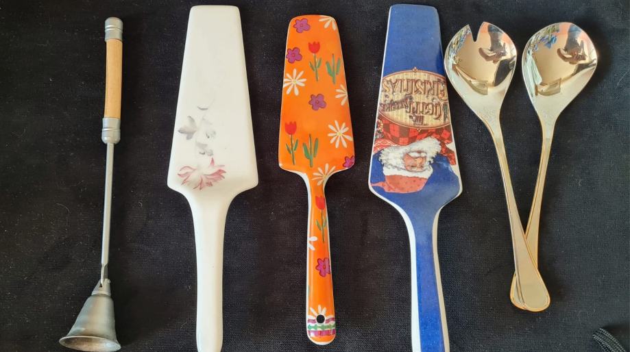 Lopatice za kolače, set za salatu i zvono za gašenje svijeća.