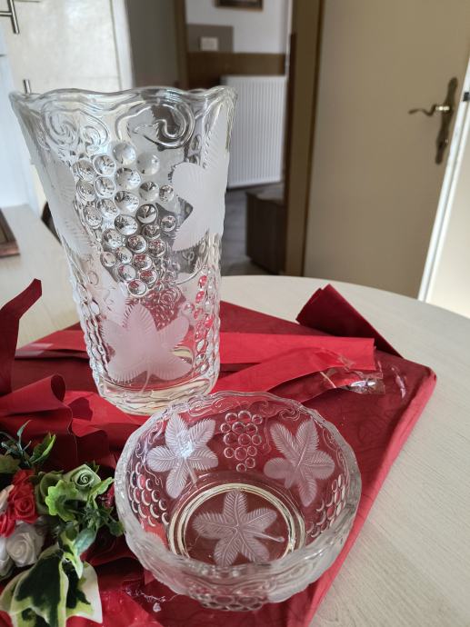 Predivna kristalna vaza visine 20 cm i mala kristalna zdjelica.