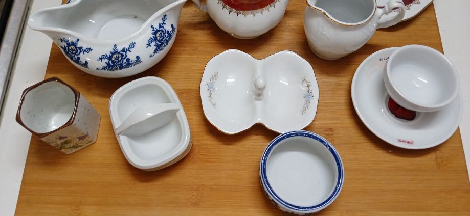 Lot raznih salica čaša tanjuriča posuda za mljeko sol šecer.za dekoraciju ili popunu kompleta..šaljem.0958241802
