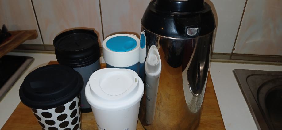 Lot termos šalica i čaša.4 šalice/čaše od toga jedna keramička te velika termosica klasična.prodaja u kompletu.stanje vrlo dobro.šaljem tisak pošta.0958241802