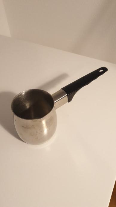 Đezva malih dimenzija od nehrđajućeg čelika, nekorišteno, kvalitetna izrada i ručka.