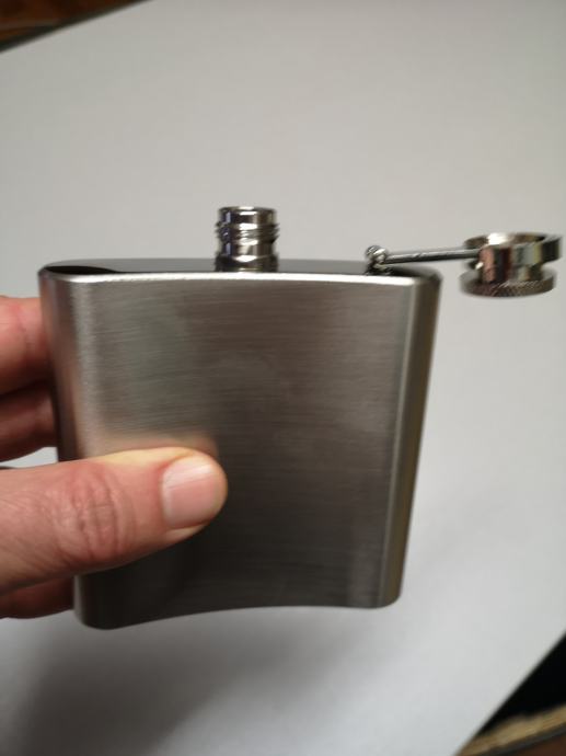 Pljoska je visine 9,2cm širine 2cm i dužine 9,2cm i stane u svačiji džep.