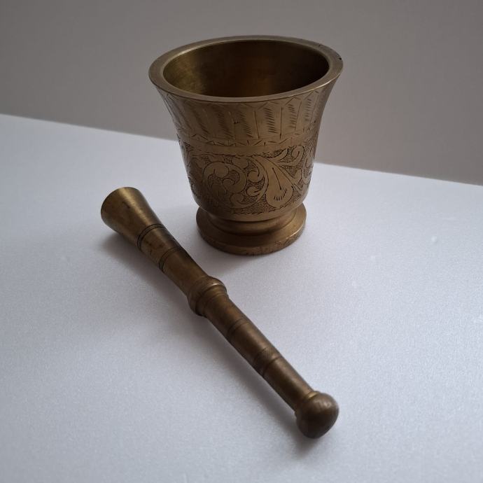 Metalni mužar - veličina 11x9 cm. Tučak 19 cm.