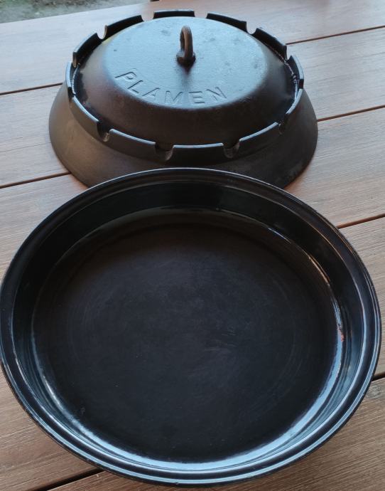 Prodaje se peka-saće Plamen od lijevanog željeza promjera 40 cm. Jako malo korištena, razlog prodaje nedostatak uvjeta za loženje u dvorištu, kupljena električna peka. Samo osobno preuzimanje, Bjelovar.