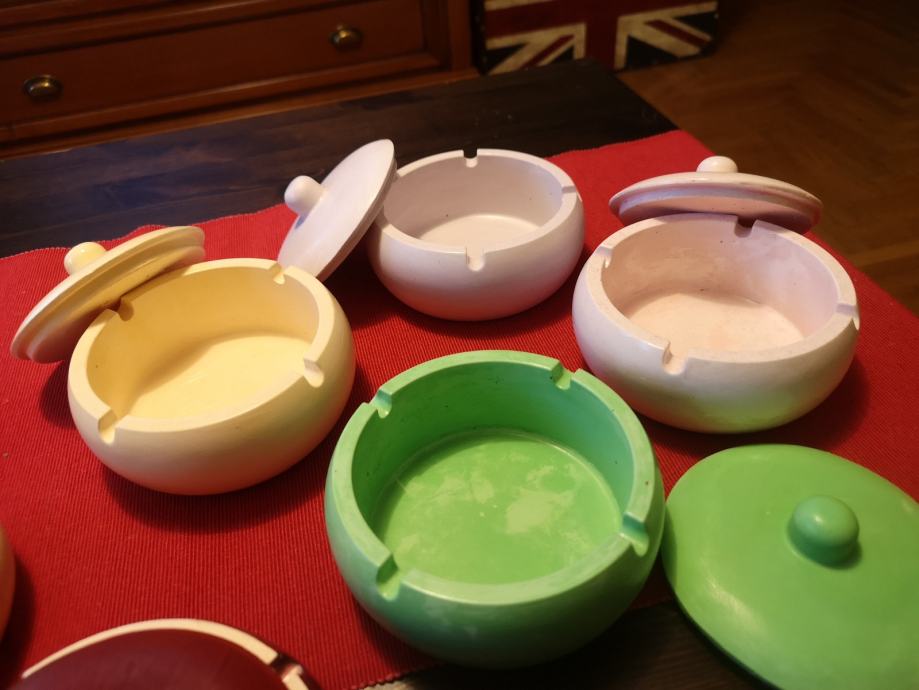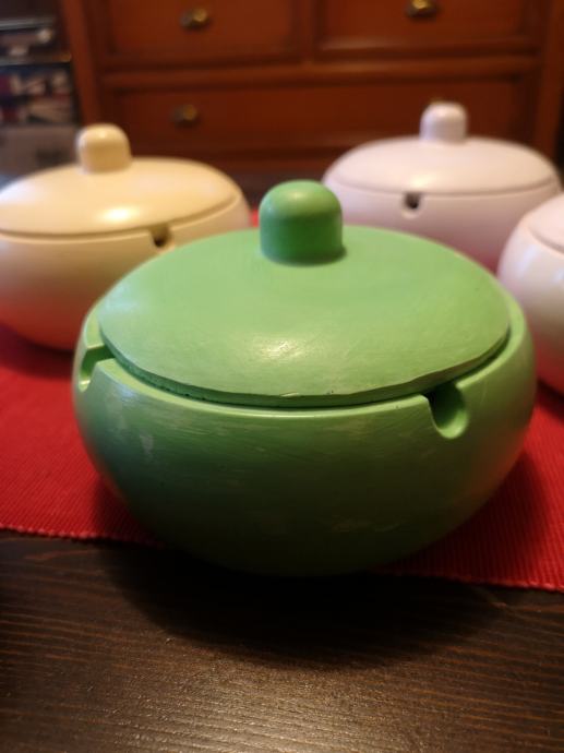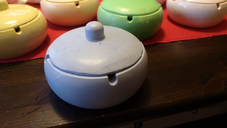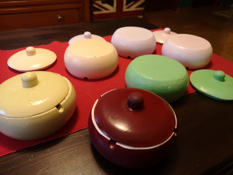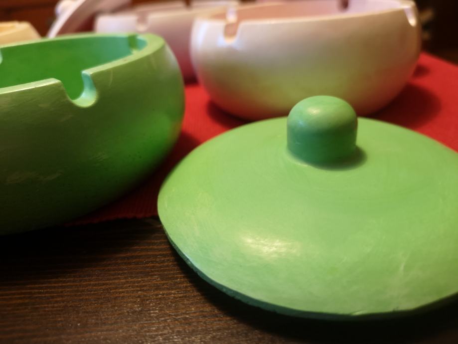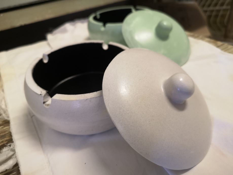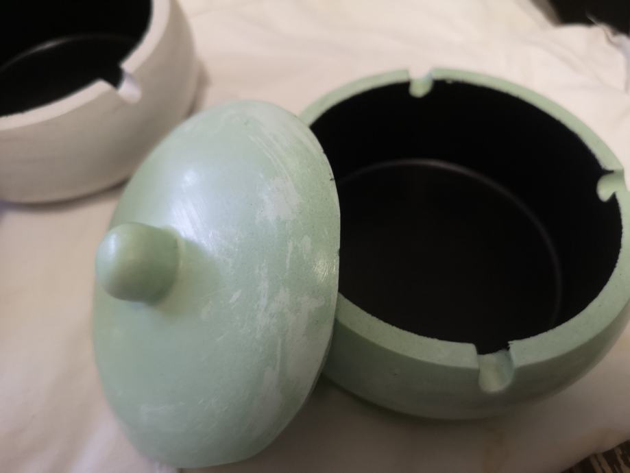 Pepeljara, posuda sa poklopcem od gipsa, premazana impregnacijom radi pranja. Fi 13 cm. Jedna 3 €, 5 kom 10 €. Ne šaljem pouzećem