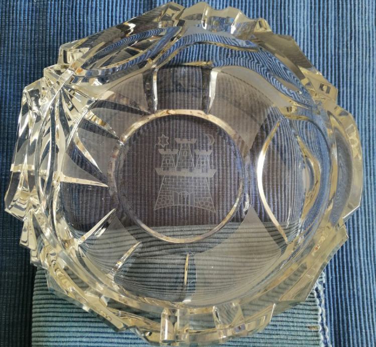 Pepeljara kristalna, Kristal Samobor - brušeni grb grada Zagreba. Težina 2275 g., promjer 18 cm, visina 6,5 cm.