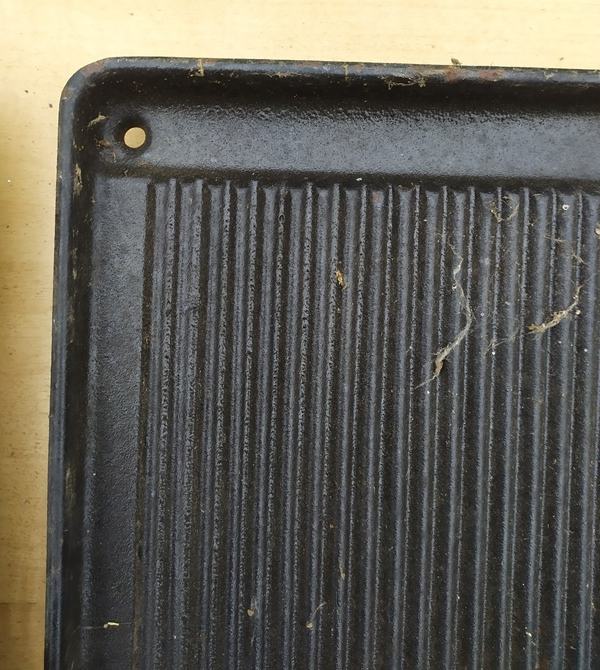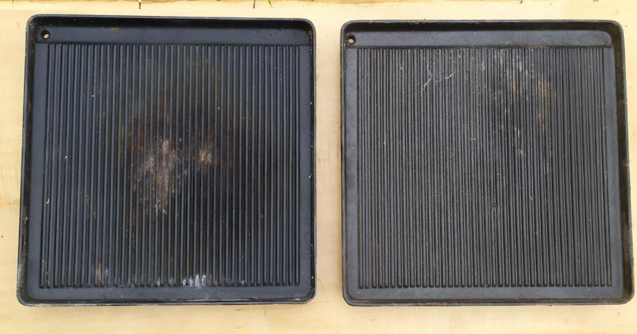 Ploča za profesionalni roštilj, gusnata (lijevano željezo) masivna sa rebrima, kanalom za sakupljanje safta / toća i sa rupicom za ispust safta / toća. Ploče imaju ušice za nalijeganje na konstrukciju te lako stavljanje i vađenje. Proizvodnja "Končar" Zagreb
