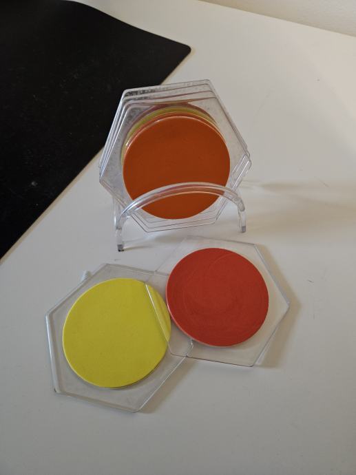 Prodajem podmetače za čaše, 6 komada, više boja. U setu je i stalak za njih.