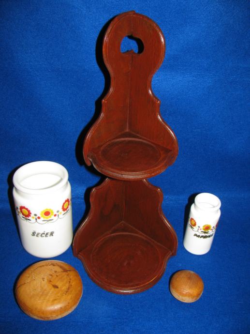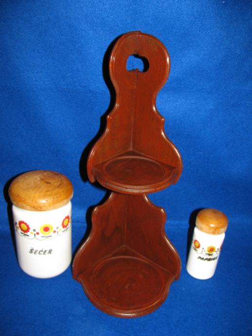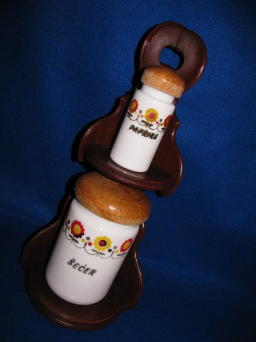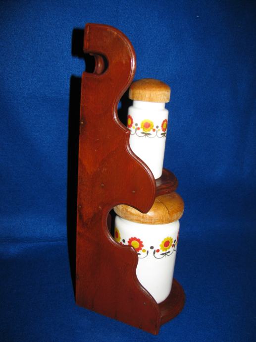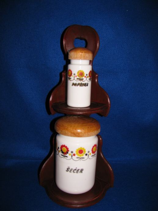 Izrađena od tvrdog drveta sa dvije staklenke od arkopala ili nešto drugo.
