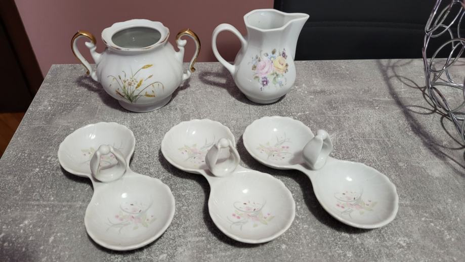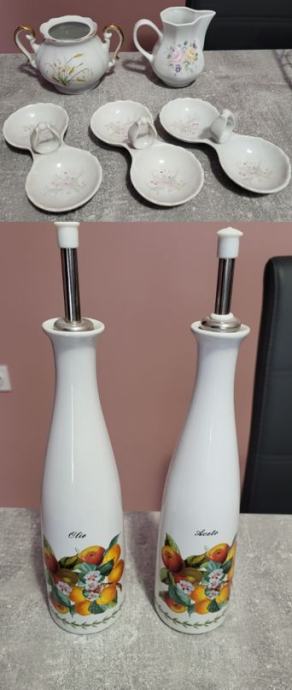 Porculanski lončić za mlijeko, posuda za šećer, papar, ocat i ulje