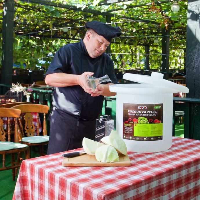 Polietilenska posuda za zelje je jedinstvena u tome, da zelje nije potrebno prati. Cilindrični oblik posude jamči, da se unutarnji poklopac jednomjerno spušta do dna pa zelje na površini ne truli.