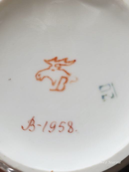 Žig glave losa s inicijalom "B" pripada Tvornici porculana Dmitrov (Gardner of Verbilki), jednoj od najstarijih ruskih tvornica porculana.