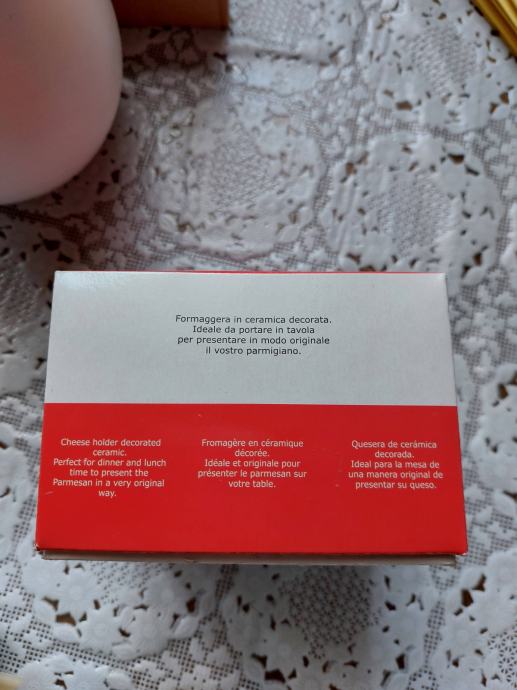 Posudica za parmezan, nova, nikad korištena. Kupljena u Italiji. U obliku parmigiano reggiano sira, u originalnoj kutiji.