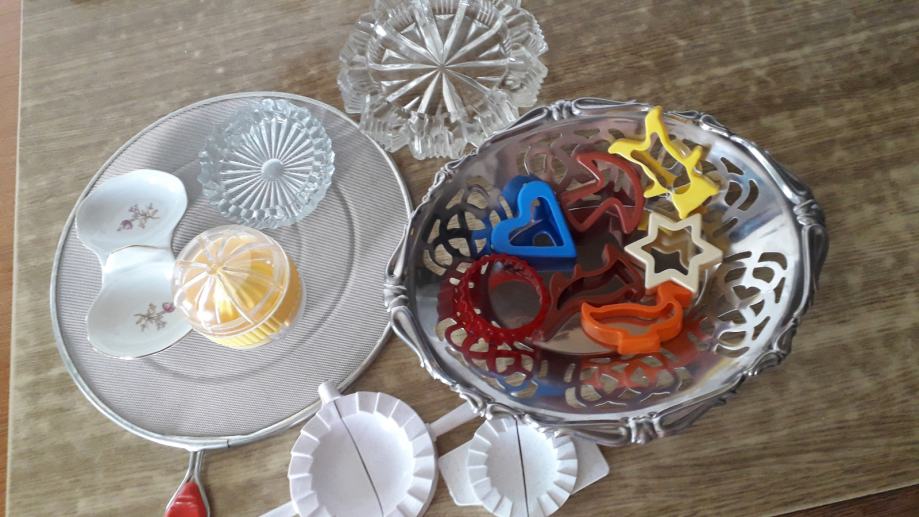 solenka, cjedilica za limun, dječja čaša, pepeljara, modlice za kolače i