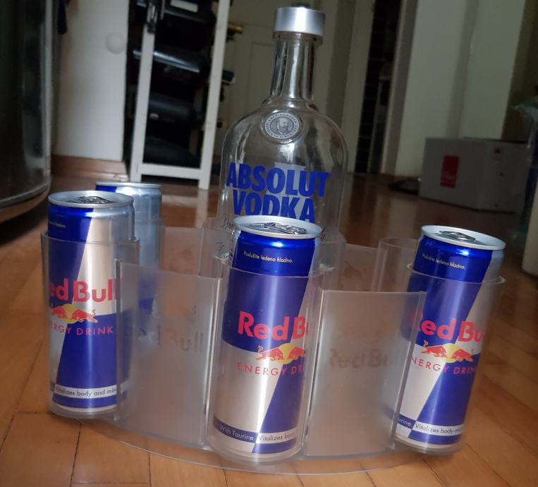 Velika kibla za 6 limenki Red bulla i odjeljkom za bocu u sredini koji može držati boce do 1l.