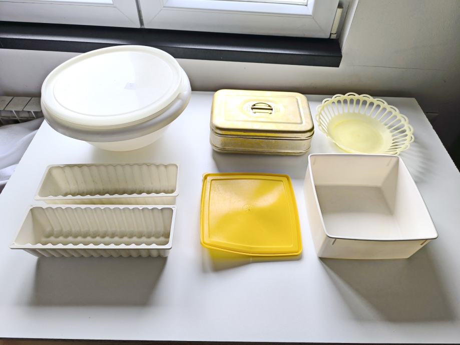 3. Dvije retro posude od tvrde plastike, za puding i slično. - Iz 1960. - tih.