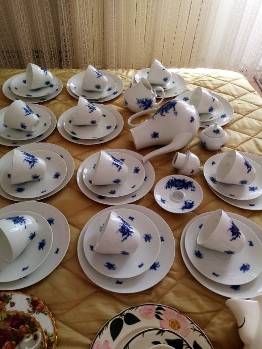 Rosenthal servis za kavu i čaj za 12 osoba. Njemački vrhunski porculan. Šalice su veće. Neoštećen u super je stanju.Može Vaša ponuda Kontakt broj mobitela je 098-9716270