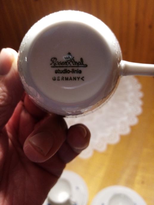 Rosenthal servis za kavu i čaj za 6 osoba komplet kao na slikama. Šalice su većeg obujma tako mogu biti i za čaj. Poznati njemački porculan, mislim da nije ni bio u upotrebi nego samo ukras u vitrini.