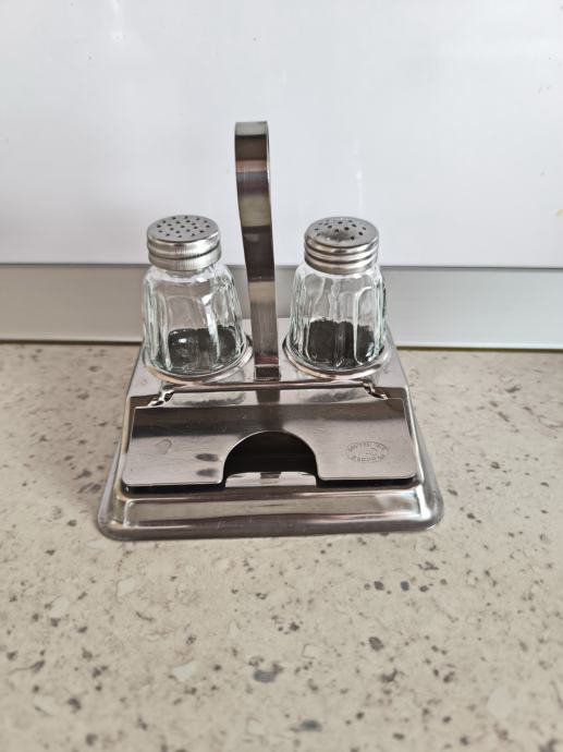 Soljenka i paprenka sa prostorom za čačkalice u rostfrei nosaču, RAD BEOGRAD