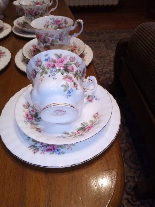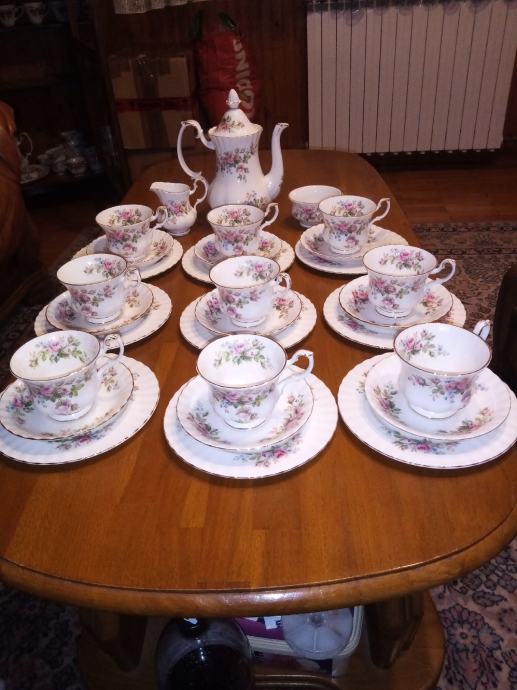 Royal Albert Moss Rose. Servis za kavu i čaj za 9 osoba. Engleski vrhunski porculan. Neoštećen u super stanju.