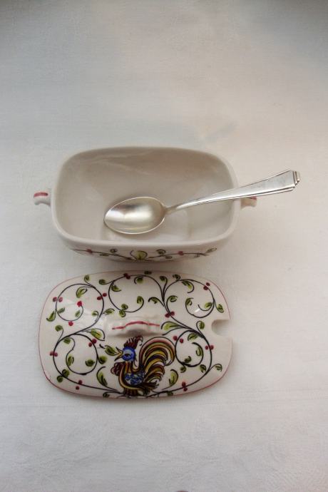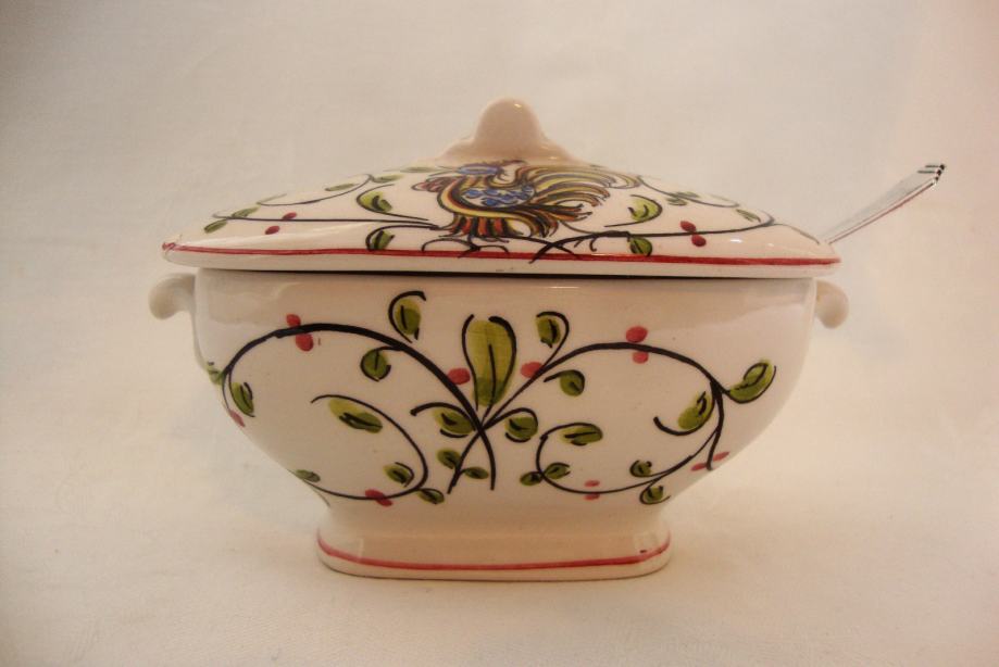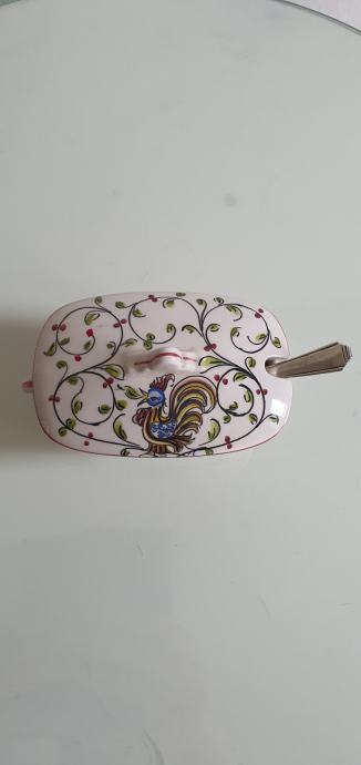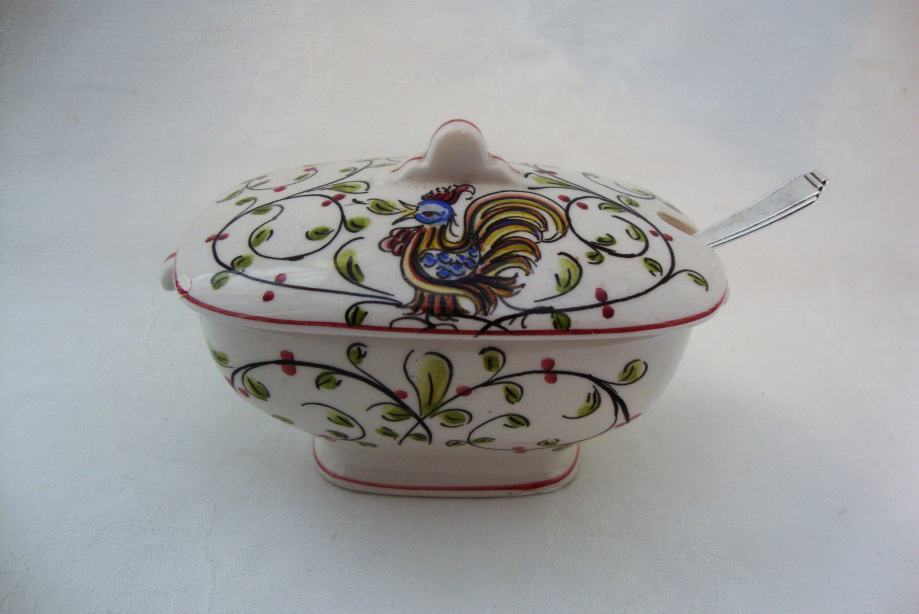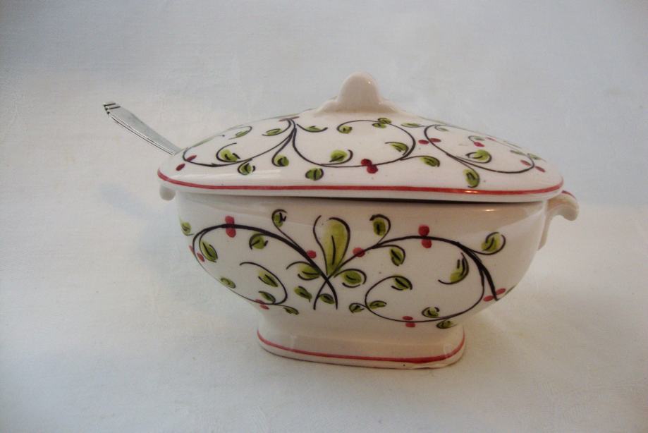 Krasno ručno oslikana šećernica potpisana fajansa iz 1950. godine vrlo lijepa i dekorativna