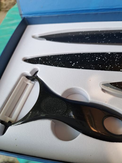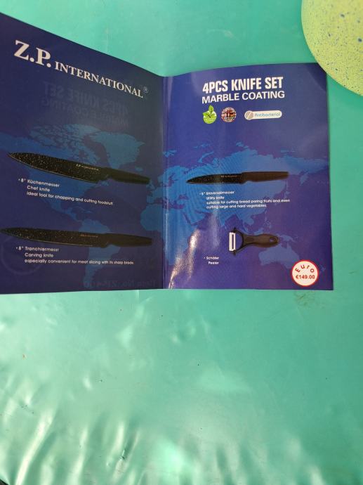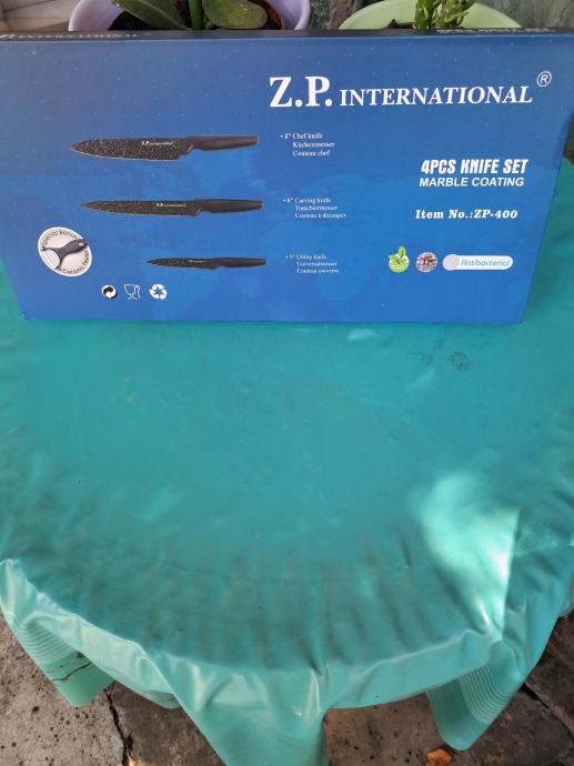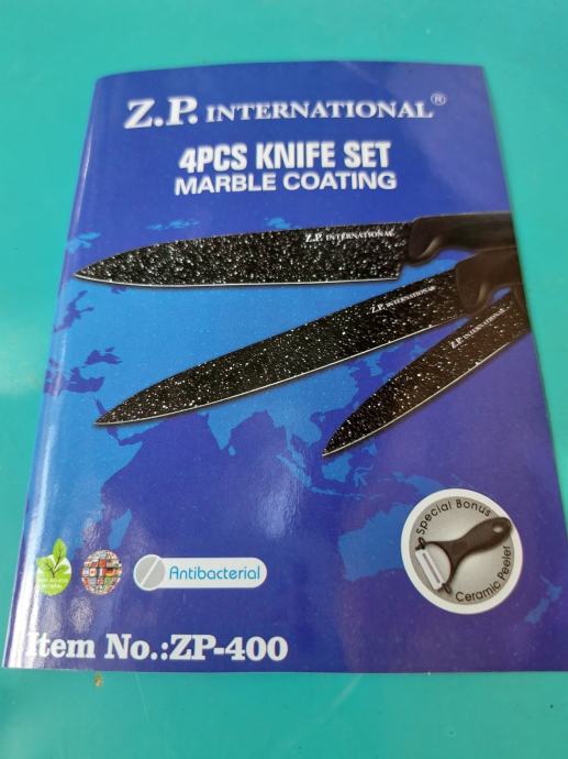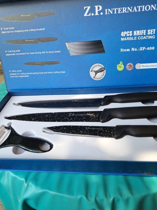 Ovaj set noževa visoke kvalitete iz Z.P.International savršen je dodatak svakoj kuhinji koji poboljšavaju tvoje kulinarsko iskustvo.Set uključuje četiri noža različite veličine za sve osnovne kulinarske potrebe, te praktičnu gulilicu za povrće.Svi noževi su izrađeni od visoko kvalitetnog nehrđajućeg čelika s mramornim premazom za izdržljivost i oštrinu te otpornost na hrđu.Svaki nož ima agronomske drške za udobnost i kontrolu. Zahvaljujući mramornom premazu , noževi se kako čiste i održavaju.Ovaj set noževa je izvrstan za svakodnevnu upotrebu a također predstavlja i odličan poklon za sve ljubitelje kuhanja.Kupite ga sada i osigurajte si dugotrajne i kvalitetne noževe koji će vam pomoći u pripremi svih vaših omiljenih jela.