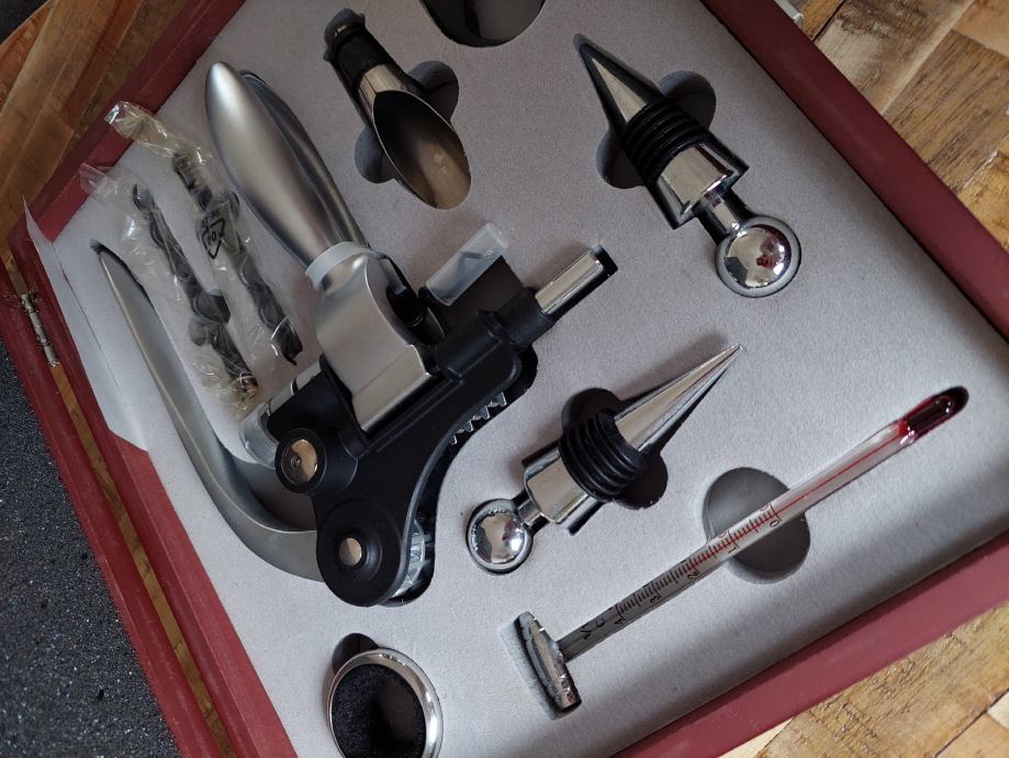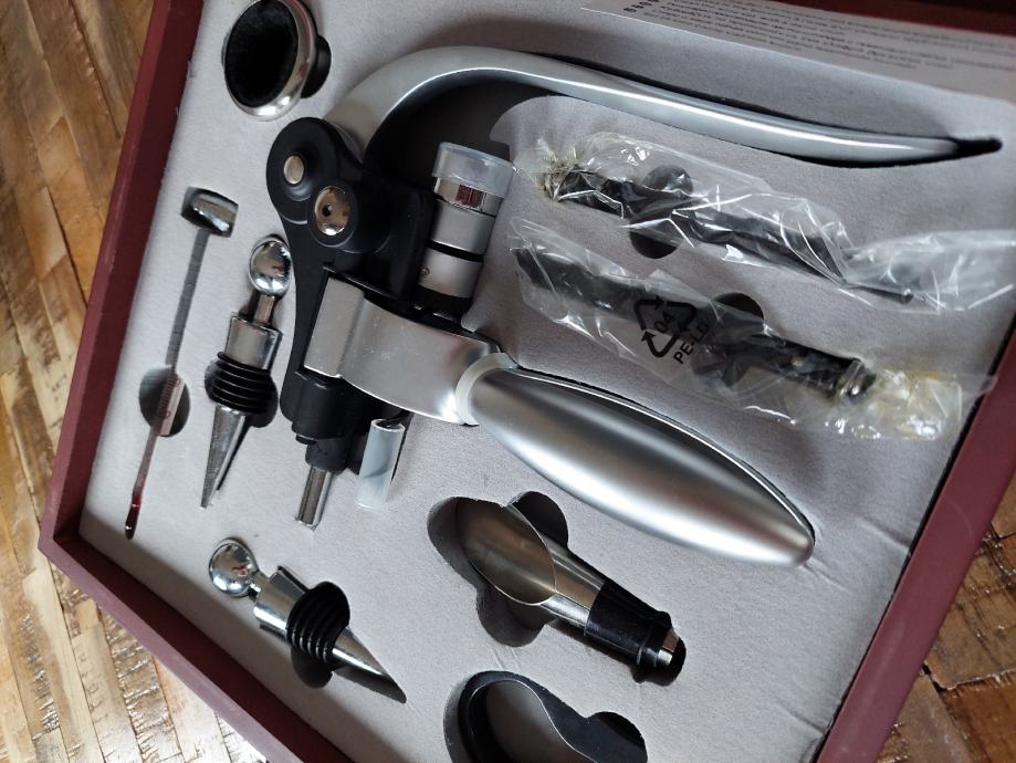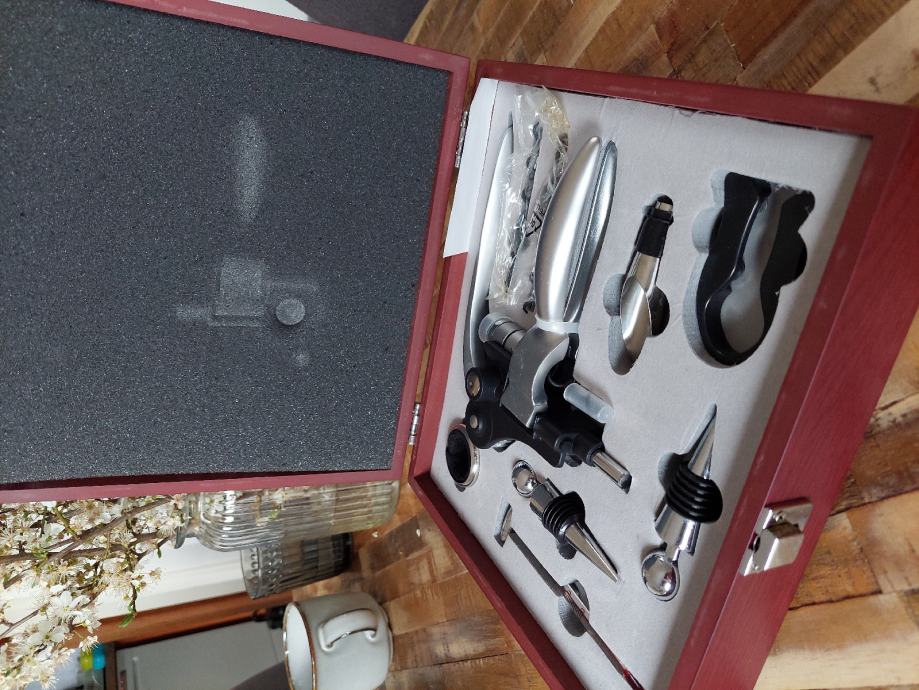 Prodajem potpuno novi, nekorišteni set za otvaranje i posluživanje vina. Dolazi u pripadajućoj elegantnoj drvenoj kutiji.