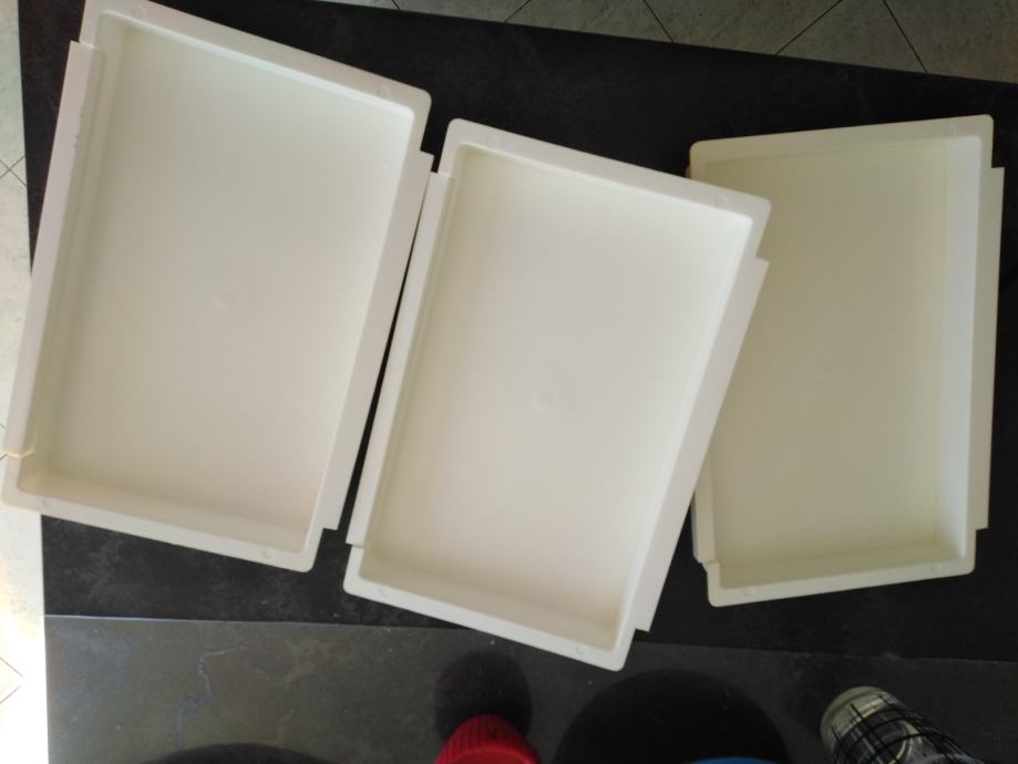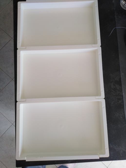 Set za pohanje, bez prljanja oko tanjura kod prebacivanja. Vrlo malo korišteno. Sastoji se od 3 plastične pravokutne posude, svaka dim. 27 x 18 x 2,5 cm koje se nataknu jedna na drugu, naročito zgodno kod pohanja veće količine.. .. 095 1979432