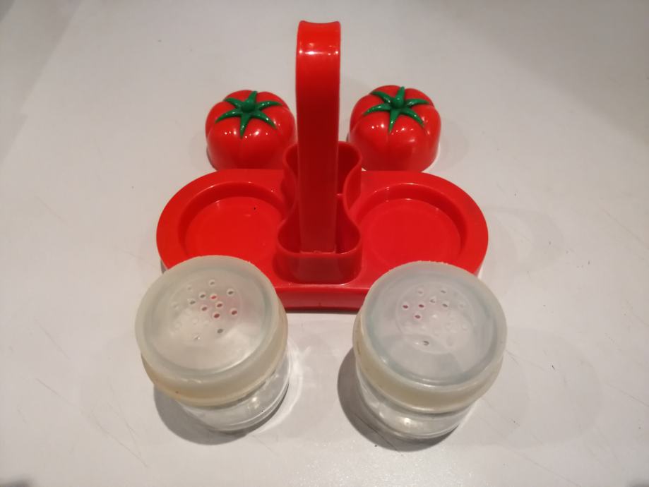 Prodajem veseli set za sol i papar (a ima i pretinac za čačkalice).