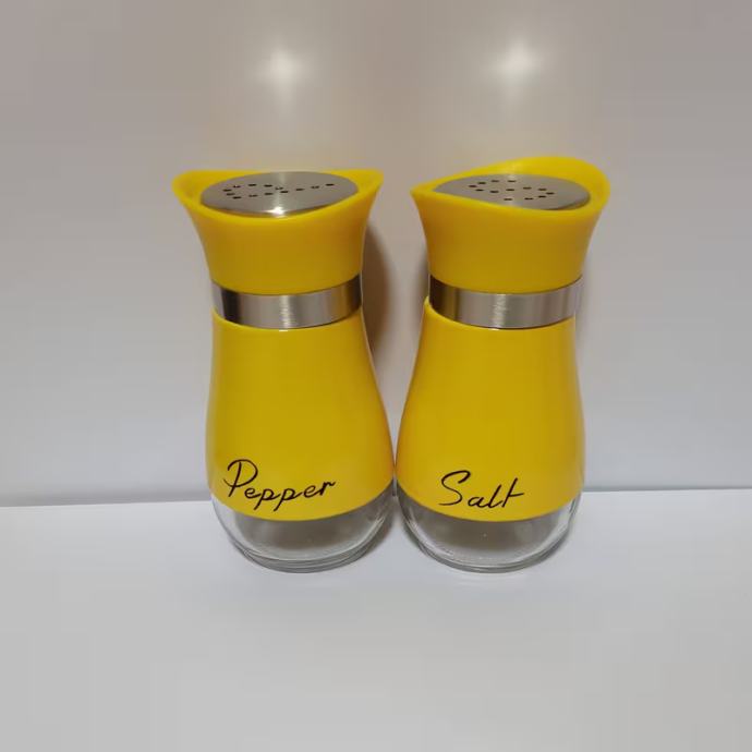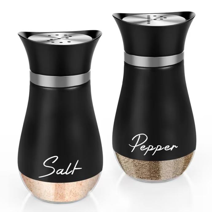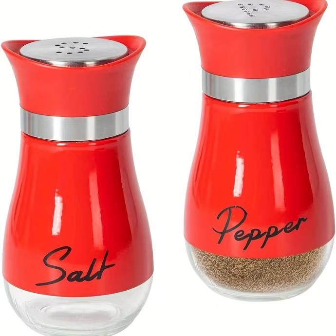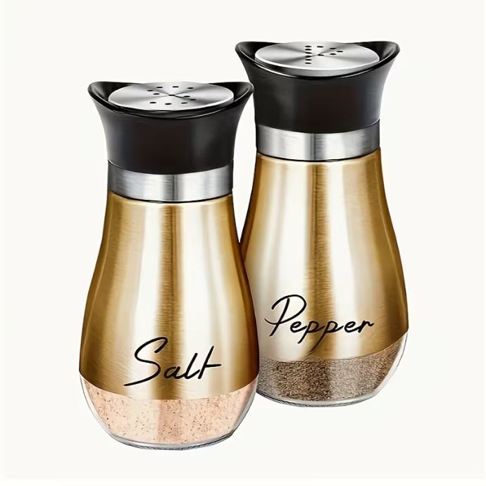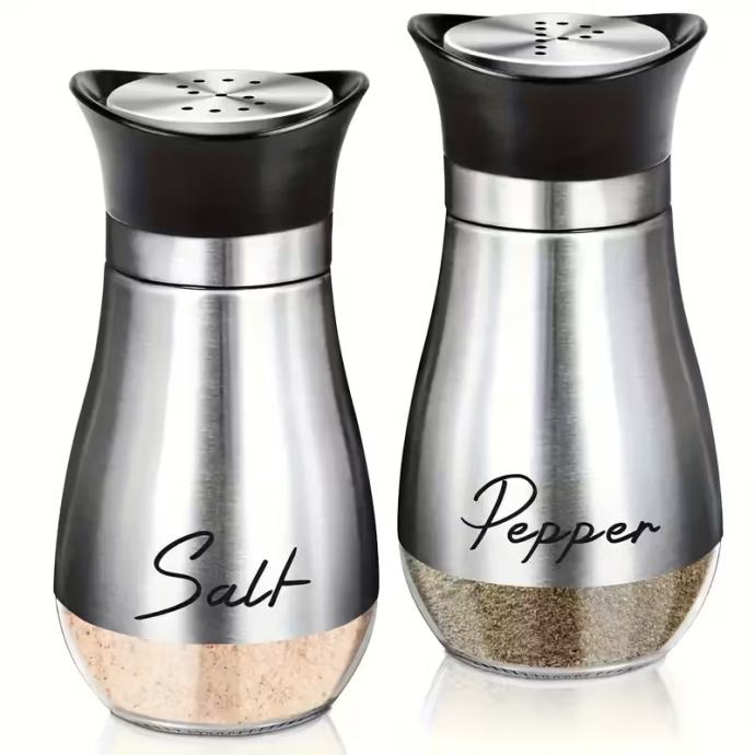 Set soljenki i paprenki, soljenke i paprenke sa staklenim dnom od 4 unce (otprilike 113,4 grama) i poklopcima od nehrđajućeg čelika, prikladne za kuhinjske stolove, kampere, kampiranje i roštilje. Bočice za začine. Posude za sol i papar.